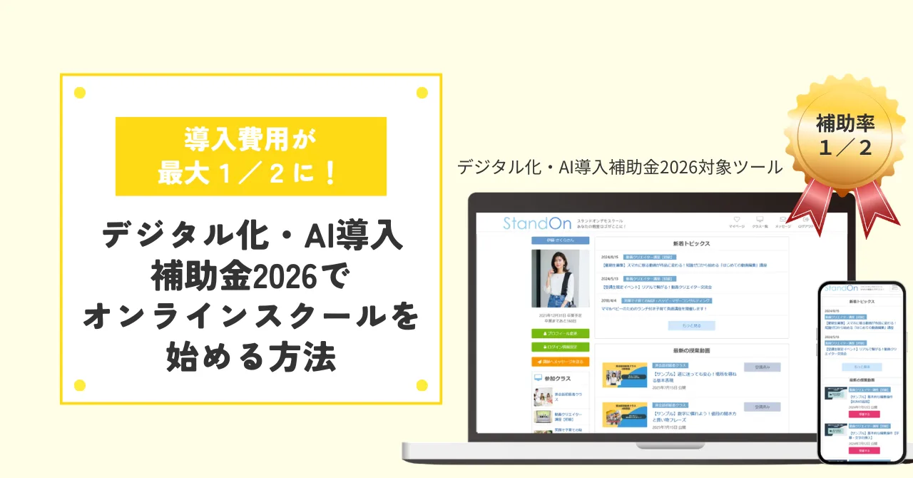 StandOnでは、お手持ちの動画やテキスト教材を掲載してオンラインスクールが完成します。