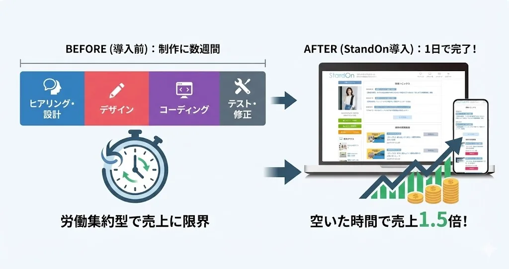 その結果、わずか1日のスピード納品で新たな収益源を構築し、労働時間は変えずに売上1.5倍という驚異的な成果を達成。